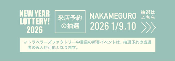 また、今年はトラベラーズファクトリー中目黒、京都の新春福引実施日の入店は、抽選予約になります。(ステーションでは福引の開催は行いません)。ご迷惑をおかけしますが、なにとぞご理解のほどよろしくおねがいします。