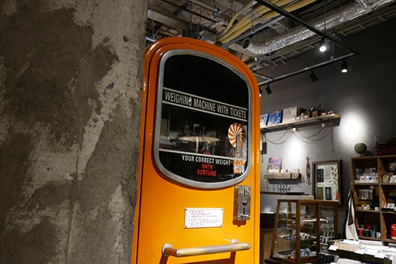 まずは、香港で使われていたヴィンテージのチケット式体重計を設置。