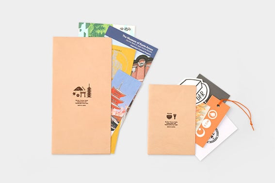 栃木レザーのヌメ革に京都モチーフをレザーで刻印したレザーホルダー。旅先で手に入れた紙ものをざくざく収納できます。