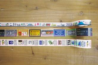 成田空港から飛び立つトラベラーズエアーと富士山までの風景を描いたNRT TRIP柄、飛行機が空港に着きTFA エアポートに向かうまでを記したNRT AIRPORT柄、ミニ日本ガイドになっているJAPAN GUIDE柄の3種のマスキングテープが登場。日本土産としておすすめです。