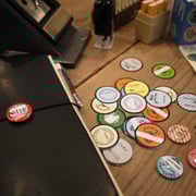 その後、マシーンで組み立てて、オリジナルなボタンチャームの出来上がり!