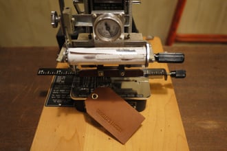 ホットスタンプマシーンを使用して、「TRAVELER'S FACTORY」のロゴを革のタグに刻印します。