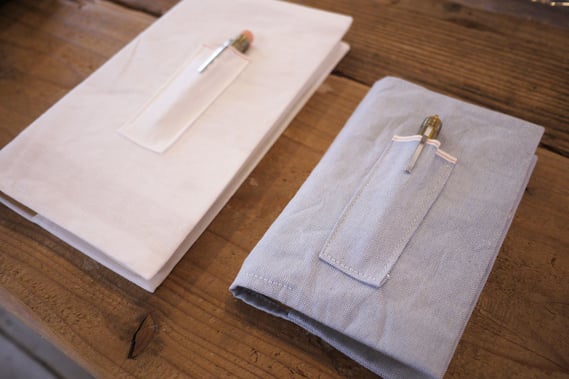 AIR ROOM PRODUCTSさんには、今回もシャツの生地を使ってスパイラルリングノートのカバーを作っていただきました。また、イベント中にオックスフォードのBDシャツをオーダー頂いた方には、ハンドステッチでイニシャル(1文字)を入れるサービスを行います。手刺繍によるクロスステッチでカスタマイズしたシャツはとっておきの一枚になるはずです。