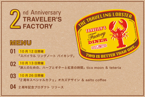 ということで、10月はトラベラーズファクトリー2周年を記念し、さまざまなイベントを開催します。