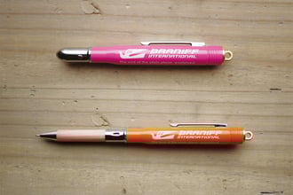 コンパクトに収納出来るボールペン(インク色:黒)です。ブラニフの「ジェリー・ビーンズ・フリート」をテーマにしたカラフルな色の飛行機をイメージし、真鍮に塗装を施しました。長く使い続け塗装が剥げていくことで真鍮が顔を出し、独特の味わいを醸し出します。