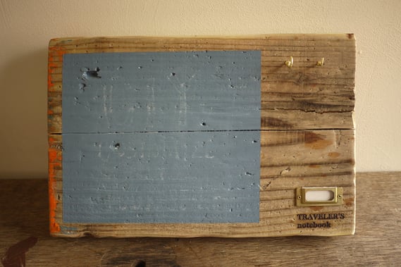 完成イメージです。左にペンキを塗ってチョークで書ける部分と、右側にフックを付けてペンやチャームを付けておける部分の完成です。