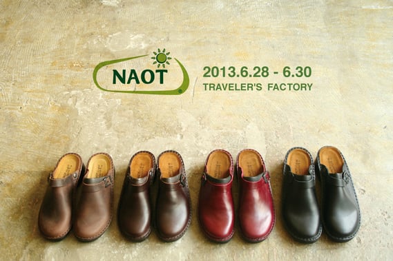 それから、いろいろな出来事やタイミングが重なり、急遽、トラベラーズファクトリー2階で6月28日(金)から30日(日)の3日間、NAOTの靴の展示販売イベントを行うことになりました。