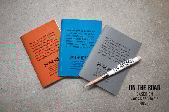 ノートの表紙には、映画に登場するジャック・ケルアックの言葉をデザイン。3つの言葉とその言葉からイメージしたカラーの表紙の3柄ご用意しました。ブラスペンシルは、マットホワイトのボディーにオン・ザ・ロードと旅の始まりを記したテキストをプリント。サル・パラダイス(ジャック・ケルアック)のように、机の上ではなく、路上で使ってほしいノートとペンシルです。