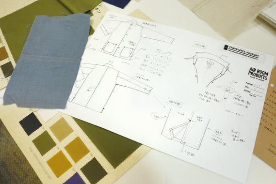 そうやって、フランスのヴィンテージシャツジャケットの型とAIR ROOM PRODUCTSのワークシャツのディテールを融合させたトラベラーズシャツの形のイメージが固まりました。