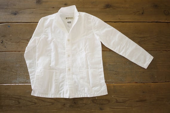 打ち合わせを重ね、それぞれの理想の旅シャツを追及していくなかで、生まれたイメージのひとつはワークジャケット。たとえば、ヨーロッパの昔ながらの工場の職人が仕事着として着ているようなヴィンテージ感漂うジャケットはどうだろうか・・・。