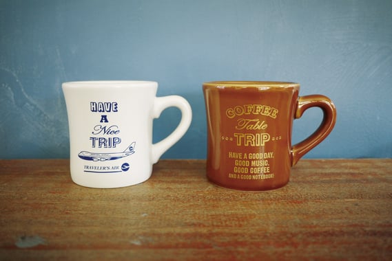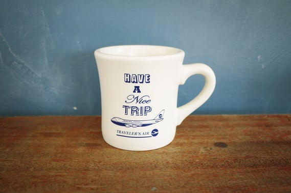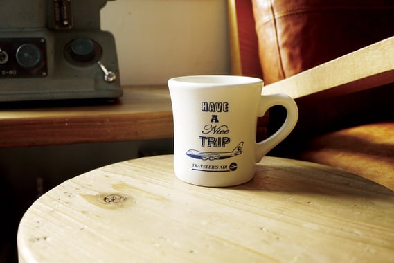 イメージは、トラベラーズ エアラインの空港ラウンジで使われているマグカップ。