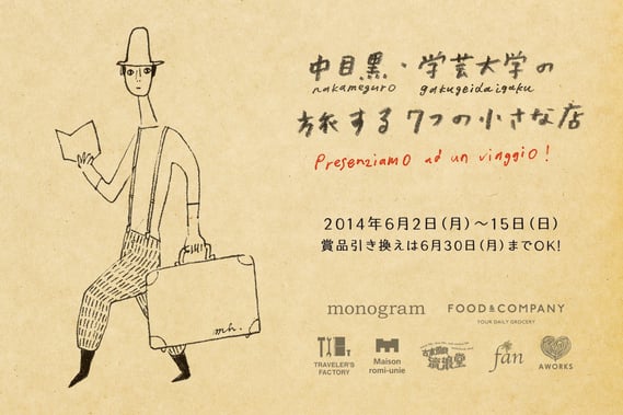 2014年6月の半月間、このエリアに集まる個性的な7つの店(雑貨&文具屋、写真屋&ギャラリー、焼菓子とジャム、カフェ、古本屋、フラワーショップ、グローサリーストア)が「旅」をテーマにさまざまな商品やサービスを取り揃えたイベントを行います。