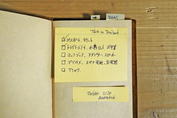 インデックスやちょっとしたメモなど、ノートと一緒に使ってなにかと便利な付せん紙。トラベラーズノートにぴったり収まり一緒に使いやすい、専用の付せん紙を作りました。