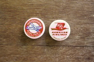 ハワイアン航空のヴィンテージロゴが記された直径32mmのカンバッジを2種セットしました。ハワイ好きのみならずエアラインや旅が好きな方にもおすすめ。バッグやジャケットに付けてさり気なくハワイアン仕様にカスタマイズを。
