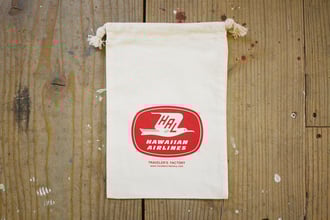 1950年~60年代半ばまで使われていたハワイアン航空のヴィンテージロゴを大きくプリントしたコットンバッグです。赤を基調としたこの時代のロゴは、エアラインロゴのデザインとしても秀逸です。機内グッズのように旅の小物を入れて使ってみてください。
