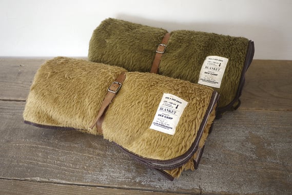 寒くなるこの季節に重宝する気持ちよい手触りのブランケット。レザーベルト付き