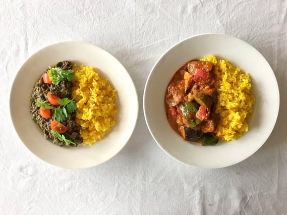 黒ごまキーマ、冷製スパイシーラタトゥイユ