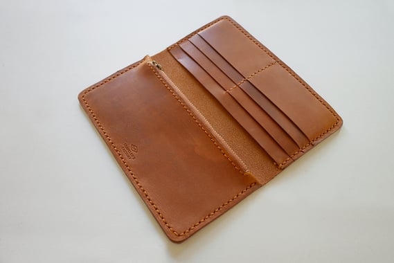 お札を折らずに収納できるロングサイズのウォレットです。毎日手にするウォレットは、革の経年変化をより楽しむことができます。