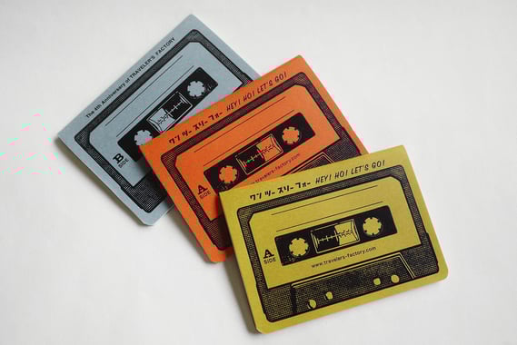 表紙にトラベラーズファクトリー4周年記念に登場したカセットテープのデザインを箔押しで表現した、パスポートサイズのノートです。