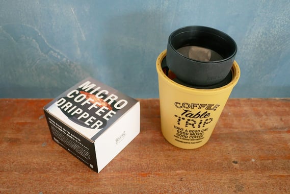 一杯用の専用ドリッパー、マイクロコーヒードリッパーもご用意しています。マグに直接セットしてコーヒーを淹れることができます。マイクロコーヒードリッパーは、マグの中に収納できるので、コンパクトに持ち歩け、旅先でも美味しいコーヒーを淹れることができます。