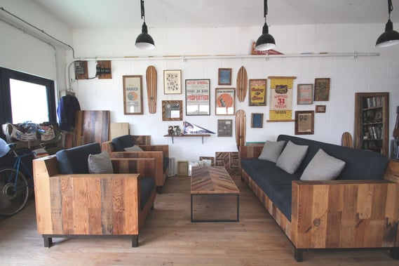2階の展示に使用するLPサイズのフレームは、”Reclaimation(再生)”をテーマに掲げ、アメリカ西海岸の古材を使って空間を演出するアイデアを発信するリクレイムドワークス。オンラインストアには、古材を使った魅力的なインテリア雑貨や家具が並びます。オーダー家具製作から店舗・住宅の空間作りまで、大小に関わらずサポート。