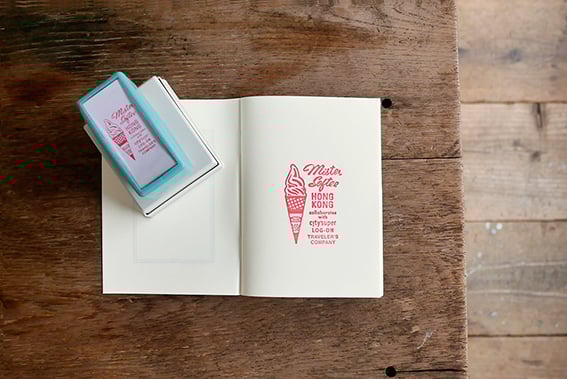 そんなすべての旅人たちにおすすめの香港のミスター・ソフティーと、トラベラーズファクトリーとのコラボレーション・アイテムが登場します。トラベラーズノートリフィルはレギュラーサイズとパスポートサイズの2種類。レギュラーサイズは、表紙にソフトクリームをデザイン。アイスのツヤ感も表現しているので、丸めて手に持てば、ミスター・ソフティー気分が味わえます。パスポートサイズは、お持ち帰りにおすすめのカップアイスをプリント。コットンバッグはお持ち帰りの際に入れてくれるビニールバッグのデザインをもとに作りました。さらに、ソフトクリームなどのメニューや、赤と青のバンをデザインしたマスキングテープやステッカーにブラスボールペンも登場します。 8月2日より、トラベラーズファクトリー各店で発売します。