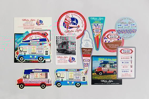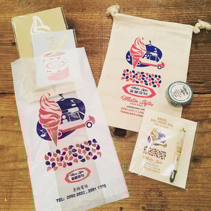 1970年代から香港の人たちに愛され続けているミスター・ソフティ。その歴史を感じさせてくれる写真やメニューなどのアーカイブや、象徴でもある歴代のバンなどをステッカーにしました。