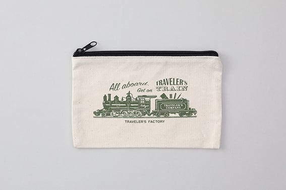トラベラーズトレインをモチーフにデザインしたポーチです。パスポートサイズがぴったり入るサイズなので、少し大きめペンケースとして、化粧品、充電器など、普段使いにも旅用ポーチにも便利にお使いいただけます。