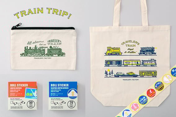 2017年4月のトラベラーズファクトリーステーションのオープンにあわせて作った特急列車や寝台特急のヘッドプレートをモチーフしたロールシールや、トラベラーズステーションから出発する架空の列車、トラベラーズトレインをプリントしたポーチやバッグが中目黒、エアポート、ステーションに登場します。