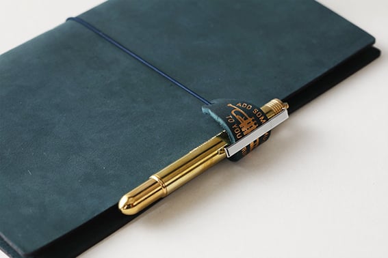 トラベラーズノートのゴムに付けることで、レザータグが取っ手のようになりノートが開きやすくなったり、ペンをひっかけてペンホルダーとして使うこともできます。