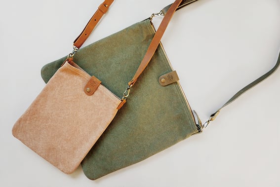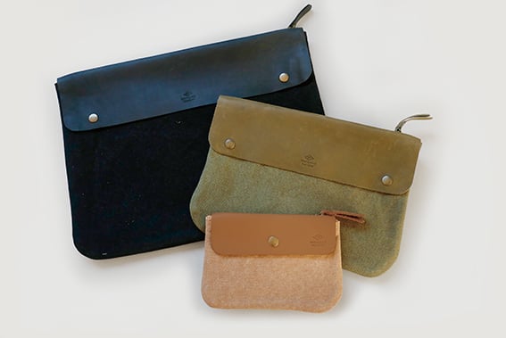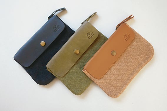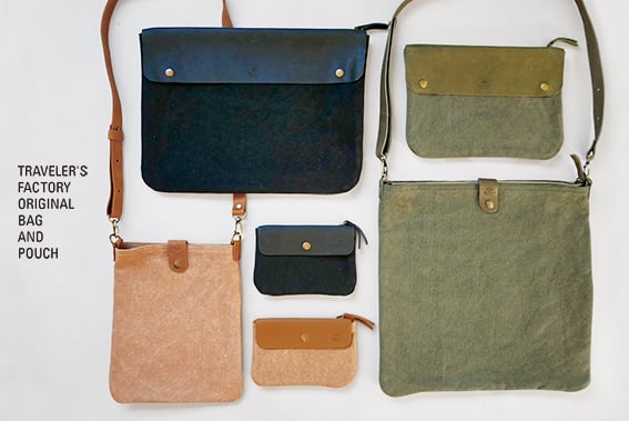 丈夫でナチュラルな風合いのキャンバスとトラベラーズノートの革で作ったバッグとポーチが登場。