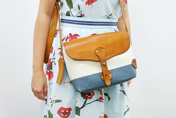 こちらは、ペイントスモールショルダーバッグを使い始めて半年ほど。ヌメ革はあめ色に変化しやわらかく、帆布も使い始めよりやわらかく馴染んでいきます。