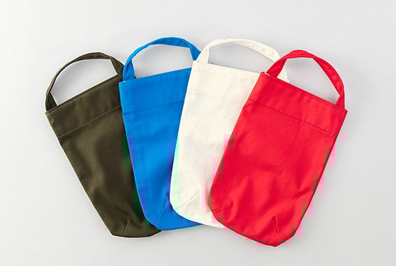 持ち手と本体の色を変えたり、後ろと前の色を変えたり、さりげなく持ち手の裏の生地だけ別の色にしてみたり、そんな無限の組み合わせを楽しむことができます。