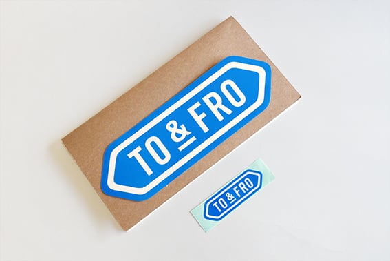 また、期間中に店舗にてコラボレーションアイテムやTO&FRO商品をお買い上げのお客様に先着でTO&FROロゴステッカーをプレゼントいたします。Lサイズ、Sサイズのどちらかお好きなサイズを1枚お選びください。