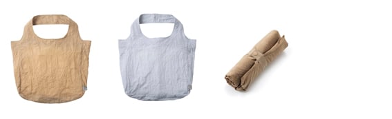 薄くて丈夫な生地に特殊なシワ加工を施したTO&FROのオリジナル素材「Peacock」を使用した、撥水機能付きの携帯バッグ。口についたテープを使ってくるくる丸めれば手のひらサイズに収納できるのに、広げると15L容量のトートバッグ。7kgの重い荷物にも耐えられます。