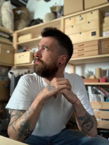 アイトール・サライバさんは、2018年にマドリードで開催したトラベラーズカンパニーキャラバンに参加いただき、オリジナルリフィルのグラフィックを制作。さらにトラベラーズタイムズの最新号の「How do you use TRAVELER'S notebook?」にも登場していただいている、スペイン在住のアーティスト。画集や絵本の出版をはじめ、世界各地で壁画を描いたり、オブジェを制作するなど幅広い活動をしています。その幻想的でメラコリックな世界観を感じさせる作品は、スペインを中心に世界中で多くのファンに愛されています。また生粋のトラベラーズノートユーザーでもあり、日々の備忘録から作品のアイデア、ラフスケッチ、資料集めなどにトラベラーズノートを愛用しています。