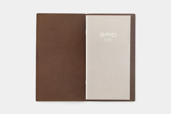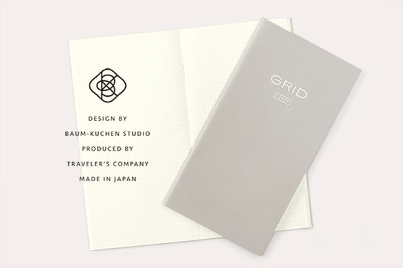 表紙もBaum-kuchenがデザイン。表の表紙には、GRIDとトモエリバー(Tomoe River Paper)を意味するTRPの文字、裏にはBaum-kuchen のロゴがホワイトの箔押しでシンプルに表現されています。