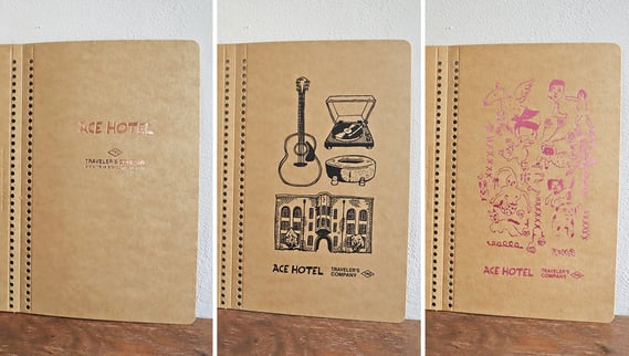 ACE HOTEL KYOTOと同じ新風館内にある、トラベラーズファクトリー京都の店内には、自由に押せるスタンプもご用意しておりますので、ぜひ出来上がったスパイラルリングノートのカスタマイズを楽しんでみてください!