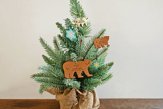 また今年もギフトをご希望の方には、サンタクロースに装ったシロクマのギフトステッカーを貼ったラッピングをいたします。こちらのレザータグやブラスバッジをギフトステッカーとともにラッピングして大切な方にギフトして贈るのもおすすめです。ぜひ。