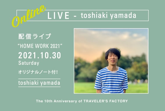 GOMES THE HITMANとしても活躍する山田稔明さんのライブ。今年は昨年に続きオンラインでの配信で開催となります!トラベラーズファクトリー中目黒の2階を中心に、店内でも演奏をしていただき、オンライン配信だからこそのライブになる予定です。またトラベラーズファクトリーでのライブの定番、山田さんとのコラボレーションによるオリジナルノートリフィルのプレゼントもあります。遠方の方もぜひご参加ください!