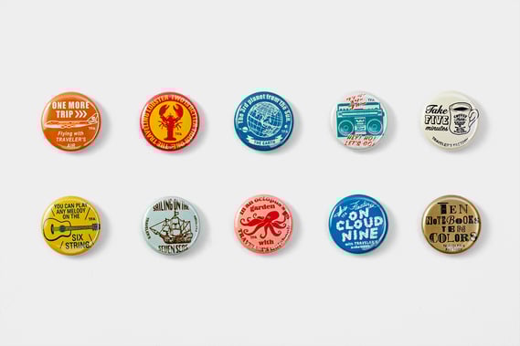 休業中のエアポートのガチャガチャマシンが中目黒と京都に出張。毎年リリースし続けている周年缶のデザインをベースに、1周年から10周年までの周年ロゴをデザインした10種類のカンバッジが登場します。