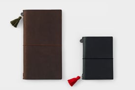 こちらはトラベラーズファクトリーが選んだおすすめの組み合わせです。写真では分かりにくいですが本体の後ろの色も違う色にしています。持ち手の長さはショートとロングどちらでも自由に選ぶことができます。