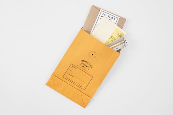 トラベラーズノートにぴったりのギフトバッグを作りました。風合いのあるクラフト紙の懐かしい紐付きの封筒です。