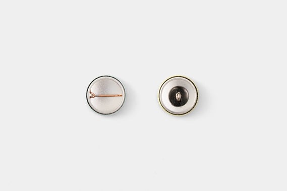 裏面は、シャツやバッグなどに付けられるバッジタイプ、トラベラーズノートに付けられるチャームタイプのどちらかをお選びいただけます。