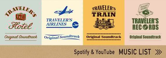 限定セットのそれぞれのテーマをより身近に感じられるお手伝いになればと、新しいノートと向き合うときに聴いてほしい音楽のプレイリストを作りました。本当はトラベラーズホテル、エアライン、トレイン、レコードをテーマにした映画を作りたかったのですが、当然そんな予算はないから、せめて映画のサウンドトラックのアルバムだけでもと、それぞれのストーリーを想像しながらプレイリストを作りました。新しいトラベラーズノートと過ごす時間のBGMにぜひ。