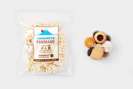 京都の手作りお菓子屋、72Kitchenの店主ナツさんがトラベラーズファクトリーのために作ってくれたオリジナルのセットです。チョコがかかったハート型のクッキーに、見た目も食欲をそそるジャムクッキー、くるみを贅沢に使ってくちどけの良いホロホロ感が楽しめるスノーボール、カフェオレと相性ばつぐんのしおクッキー、ココアのディアマンクッキーなど、店主のこだわりがたっぷり詰まった7種類のクッキーを詰めた贅沢なセットです。パッケージに記されている「72Kitchen」は、すべてナツさんが手書きで入れています。