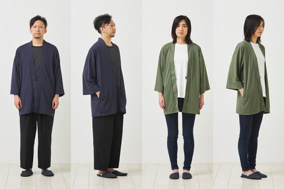 着物のようにさらっと羽織れ、作務衣のようにも着られる2WAYのジャケットです。吸水速乾、抗菌防臭機能のついた生地使用で、いつでも快適な着心地です。お風呂上りにぜひ。