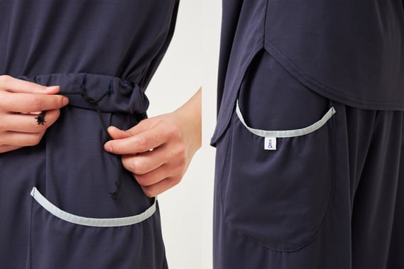お風呂上りだけでなく、旅先でのルームウェアやちょっとしたお出かけにもおすすめです。おふろボトムスとあわせてぜひ。