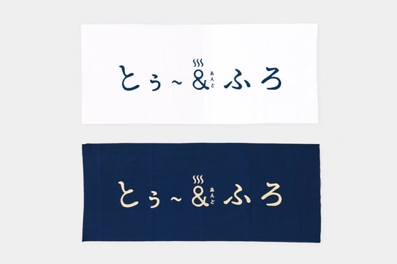 注染で「とぅ~あんどふろ」のロゴの入れたオリジナルのてぬぐいです。職人が1点1点、手で染めているため、風合いがとても良いのも特徴。