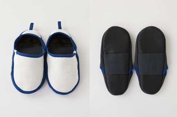 和紙糸と合繊糸を合わせたハイブリッド素材使用のおふろスリッポンです。和紙の力で防臭効果に加え、水に濡れてもサラサラで快適。裏側には滑り止めもついていて、水周りでも安心して使用可能です。
